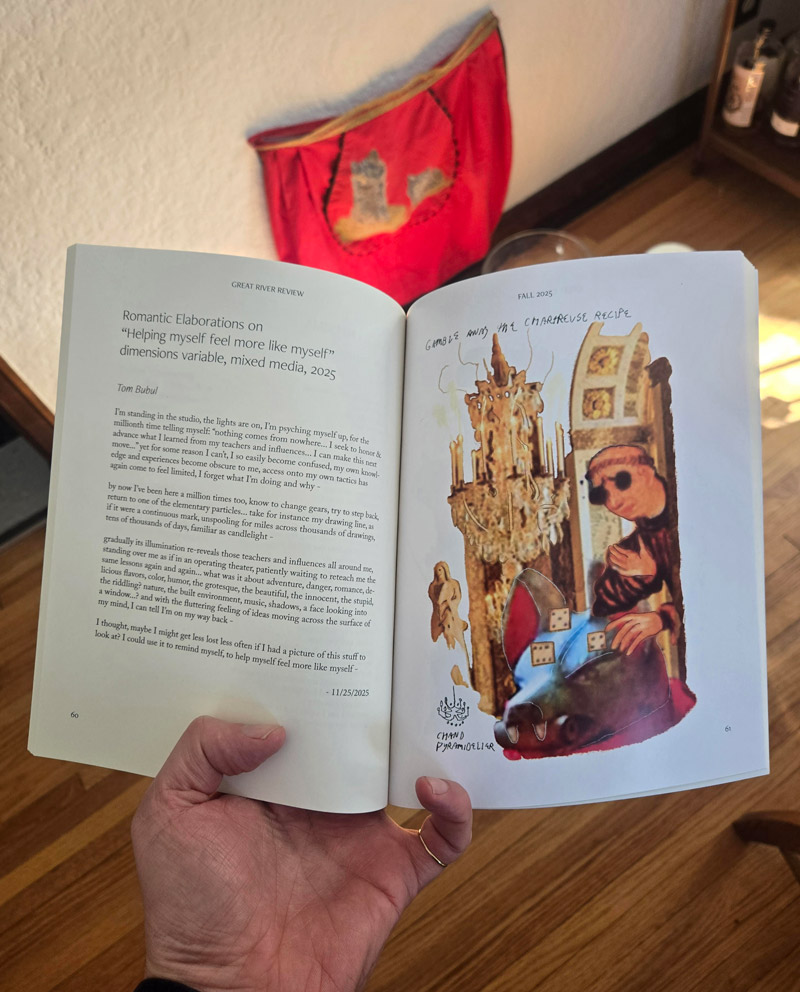 Hi, I'm Tom Bubul, welcome to my website. I'm an artist; I mainly make paintings and produce texts, but sometimes I make books, zines, or videos, perform, or do music projects.